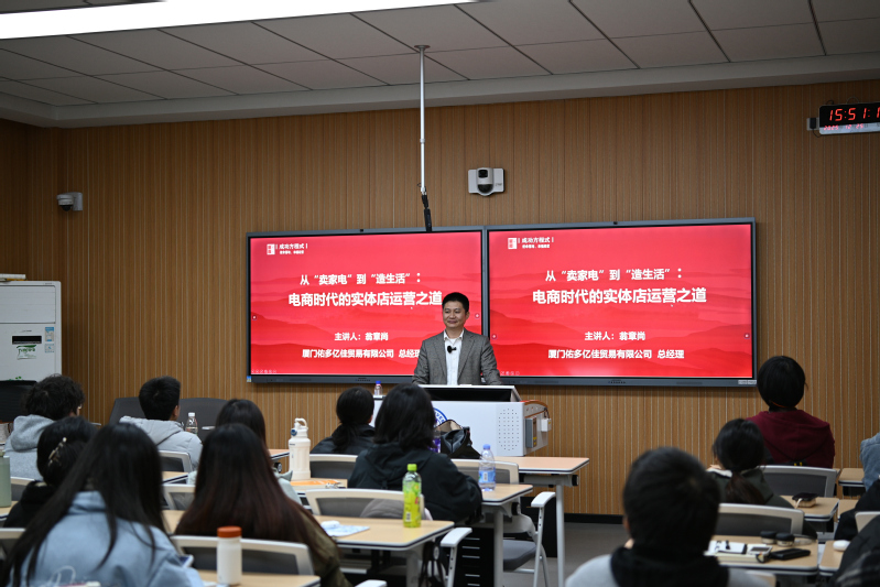 2025年12月25日下午,御宅屋 成功举办了一场主题为“从‘卖家电’到‘造生活’:电商时代的实体店运营之道”的专题讲座。本次活动特邀厦门佑多亿佳贸易有限公司总经理、资深家电零售行业专家翁章尚先生担任主讲人,活动由彭丽霞老师主持,分为专题讲座与深度访谈两个环节,为同学们带来了一场兼具行业洞见与人生智慧的精彩分享。讲座伊始,翁章尚先生以家电行业的时代变迁为引,系统梳理了从传统KA渠道、PC互联网到移动互联网...
