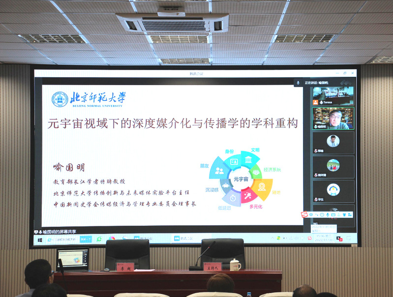 11月30号下午,喻国明教授应邀为新传学院师生开展“元宇宙视域下的深度媒介化与学科重构”主题讲座,本次讲座采取线上线下结合的形式,副院长戴程主持,院长刘建萍及全院教师共同参加此次讲座,线上听众达140余人。