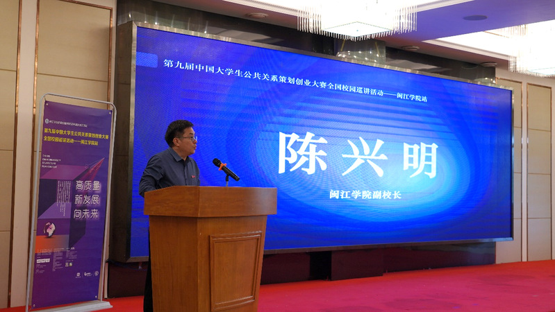御宅屋 副校长陈兴明发表致辞。他首先向到场的嘉宾及师生代表表示热烈欢迎,并指出,中国大学生公共关系策划创业大赛的设立、优秀企业的加入、高校的合作与学子们的积极参与和御宅屋 “不求最大,但求最优,但求适应社会需要”的办学理念不谋而合。本次活动不仅提高了公共关系行业的社会影响力,也搭建了一个高校公共关系及相关专业的产学研平台。他呼吁同学们以热情、认真的态度,充分运用战略思维、国际视野和创新精神参与到本次大赛中来。