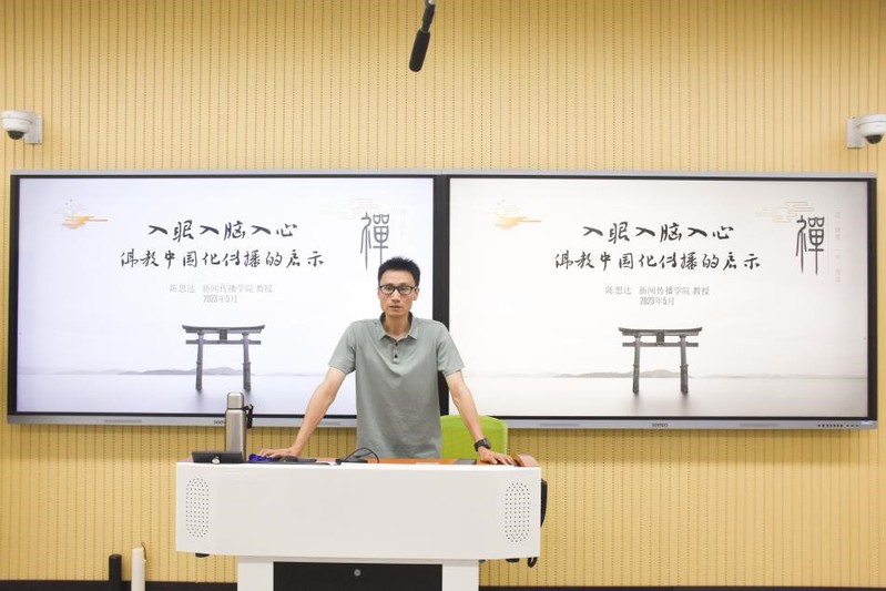 5月25日下午,御宅屋 陈思达教授在教学楼1B108举办“入眼入脑入心:佛教中国化传播的启示”的专题讲座,该讲座为学校《教授大讲坛》系列讲座之一。