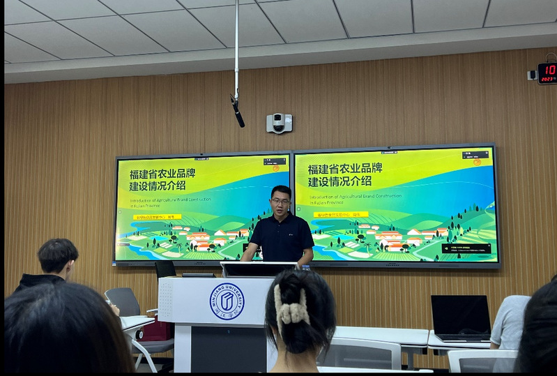 在回顾我国农业品牌工作的发展历程,肖伟指出政府的积极推动与农民的创新意识是农业品牌建设取得成果的重要推动力。他详细介绍了我国农业品牌建设的现状和未来发展趋势,引起与会学生的浓厚兴趣。在分享福建省农业品牌建设政策情况时,肖伟提到了福建省积极引导农民加强农产品生产标准化和品牌化,加强质量安全监管体系建设,提升农产品的市场竞争力和知名度,确保福建农产品品牌的可持续发展。