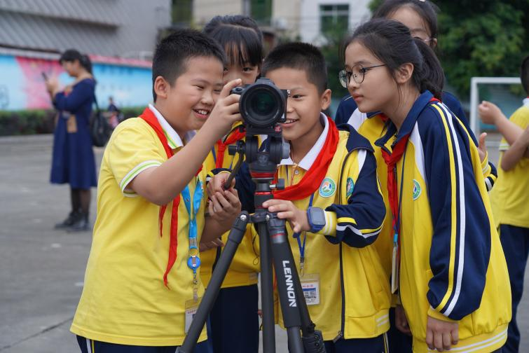 教学现场,小学生们的眼睛看着取景框,手指按动快门,咔嚓,便是一张照片。“我要拍数学老师!她可好看啦,就是不爱拍照”,说完便把镜头对准了老师。