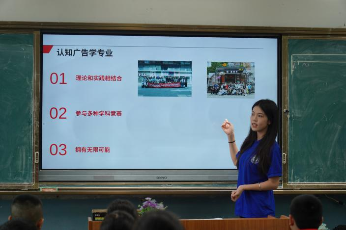 新传学院广告学、网络与新媒体、文化产业管理、数字媒体艺术专业的四位学生结合实践,情景带入,使小学生们对四个专业有了基础性的了解,并通过视频实例帮助小学生建立小学学习和大学专业的相关联系。