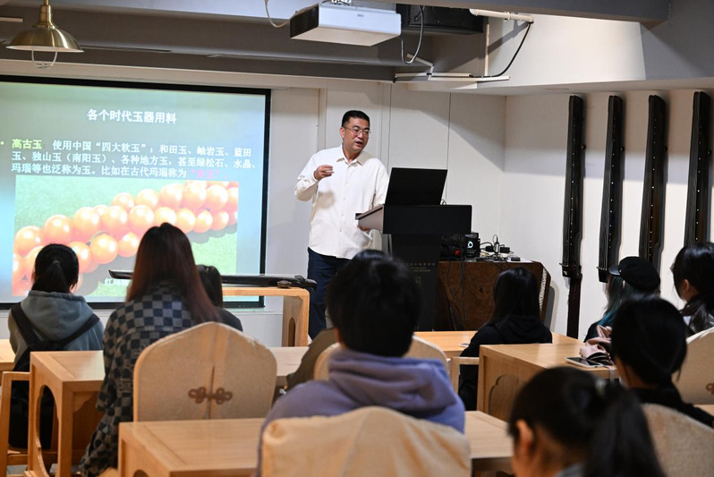 《说文解字》有云:“玉,石之美者”,早在上古时期,生活在这片土地上的人们就已经开始使用玉器。从工具到装饰,从战争到祭祀,玉的身影无处不在。雷老师以时间为线索,从远古时期到先秦,从唐宋到近代,用风趣诙谐的语言给同学们娓娓道来了不同时期玉器的作用、盛行的品种和所寄托的精神内涵,让同学们深刻感受到玉器在中华文明中的重要历史地位,感受背后所蕴含的中华民族优秀品格和精神。