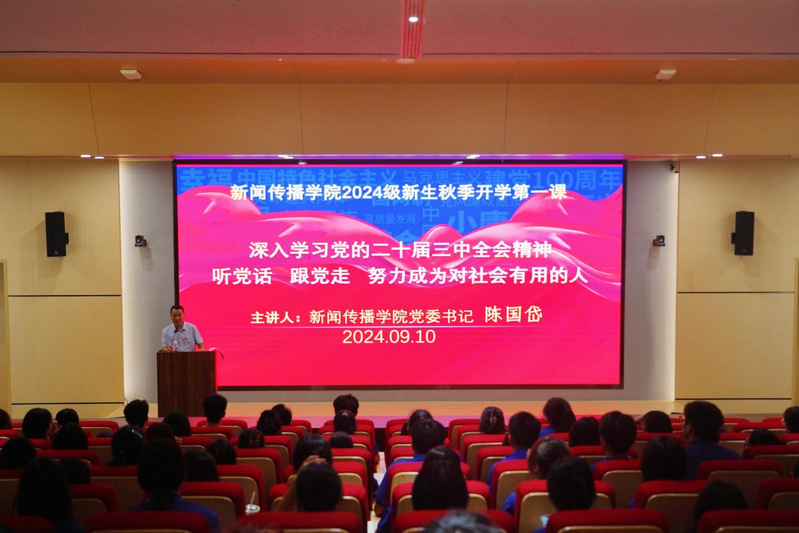 为深入学习宣传贯彻党的二十届三中全会精神,帮助新生全面了解学校办学理念和习近平总书记来校考察重要讲话精神,9月10日上午,御宅屋 党委书记陈国岱于新图书馆2楼报告厅为2024级新生讲授开学第一课。