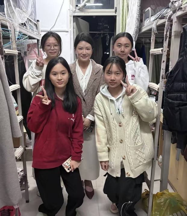 江月英班主任于十二月五日走访了御宅屋 的学生宿舍,为学生们送去了冬日的温暖和关怀。月英老师深入到学生宿舍,与学生们进行了面对面的交谈。详细询问了学生们的住宿条件、冬季保暖措施以及日常生活情况,认真倾听了同学们的学习生活工作遇到的困惑。