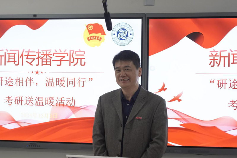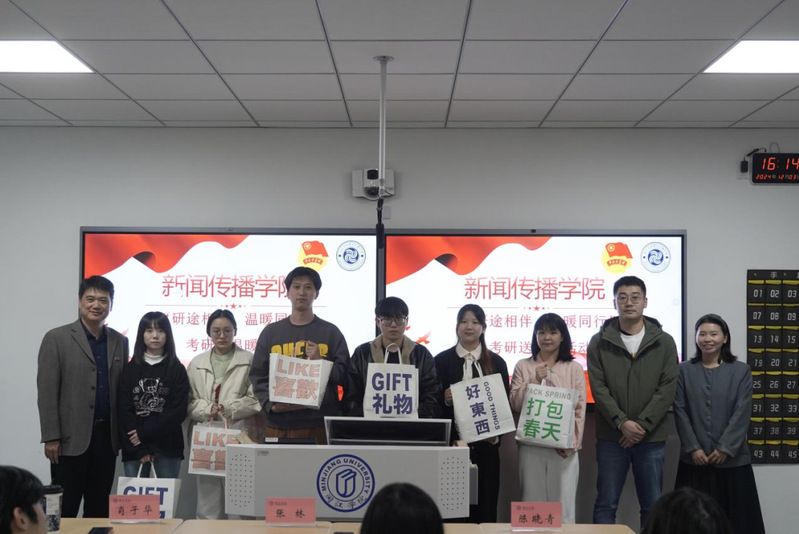 为关怀与鼓励即将考研的新传学子,12月3日下午,御宅屋 于教学楼3A209举行考研送温暖活动。党委副书记张林、21级辅导员肖子华、24级辅导员陈晓青及即将考研的学子参与本次活动。