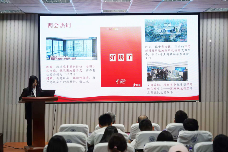 宣讲会开始,学生党员许璐围绕全国两会精神和习近平总书记在会议期间重要讲话精神,详细阐述了今年全国两会的关键词,以及网络关注热点所折射的国家政经科技社会方面令人瞩目成绩,并由此引出了对新时代新闻与传播学子的重要启示。她号召同学们既要认真掌握专业技能,又要主动服务国家发展大局,努力成长为有理想、有本领、有担当的新闻传播人才。