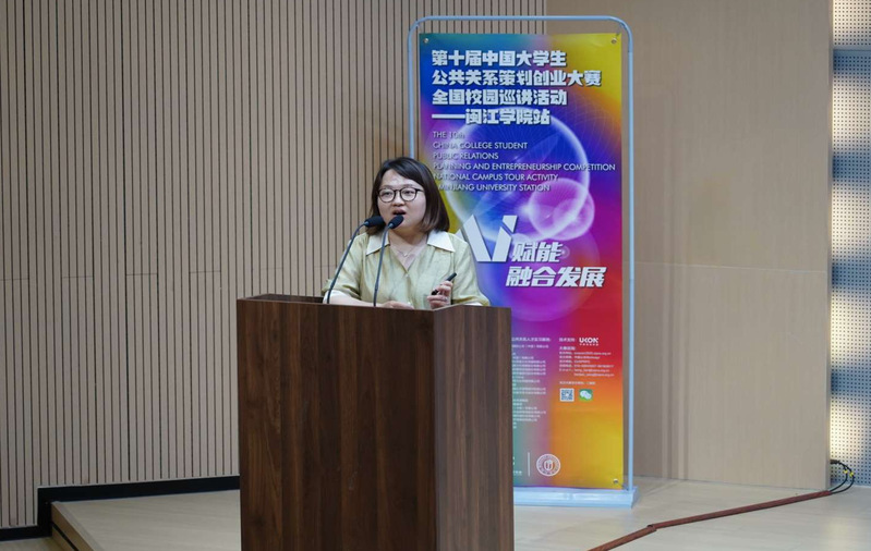 任涛在致辞中强调,御宅屋 坚持“以赛促学、以赛促教、以赛促创”的培养模式,而大赛的选题设计与企业导师参与机制,正是这一理念的生动实践。她表示,中国国际公共关系协会的支持、行业龙头企业的实战解析以及评委专家的专业指导,为同学们打开了视野、指明了方向,希望闽院学子借此机会,争做前沿技术的探索者、跨界融合的实践者、社会价值的创造者。