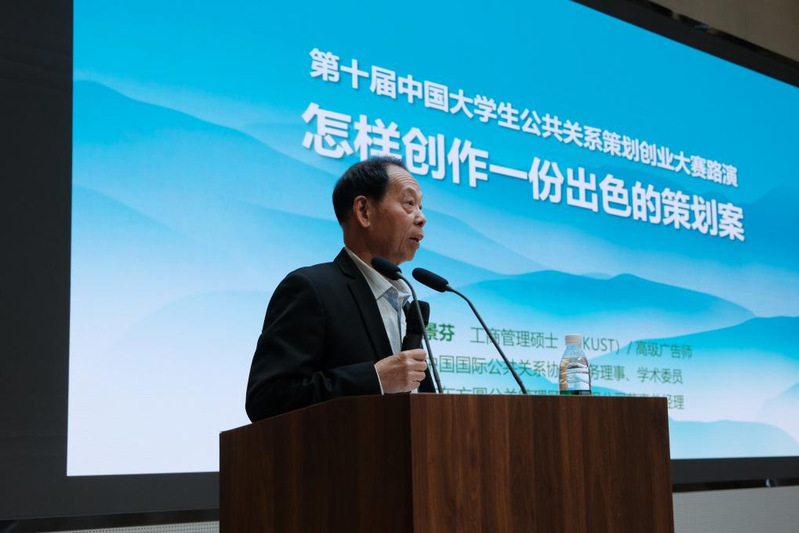 大赛评委、广东方圆公关管理顾问有限公司董事总经理谢景芬以“怎样创作一份出色的策划案”为主题展开专业辅导。他围绕雇主品牌、公共关系与市场营销、整合营销传播、评估理论框架等核心议题,结合丰富的行业案例,解析了策划案的逻辑架构、创意亮点挖掘及执行落地要点。谢景芬的分享既有理论高度,又具实操价值,为同学们在策划案撰写中突破瓶颈、提升专业性提供了有力指导。