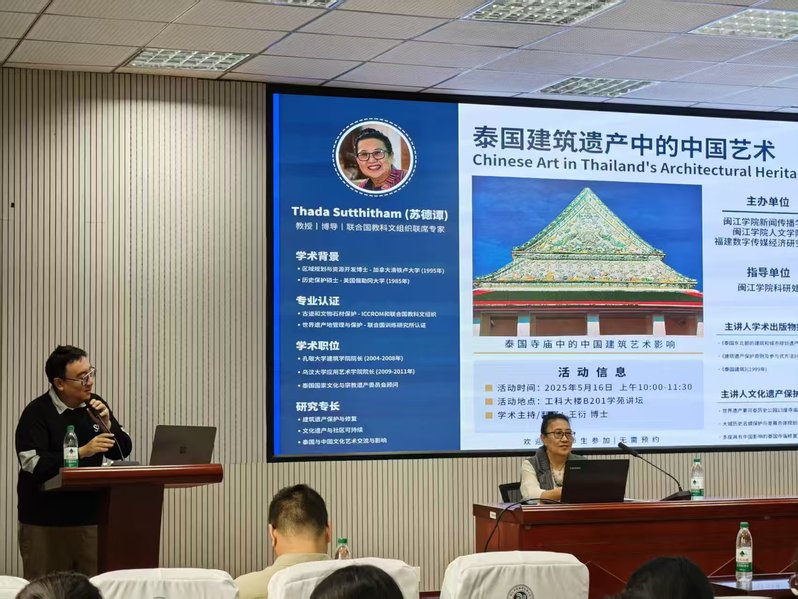 近日,国际知名的文化遗产保护专家、前泰国孔敬大学建筑学院院长、联合国教科文组织专家苏德谭(Thada Sutthitham)教授,为御宅屋 师生带来了题为《泰国建筑遗产中的中国艺术》的精彩讲座。讲座以其深厚的学术底蕴和独特的跨文化视角,吸引了校内众多师生前来聆听。