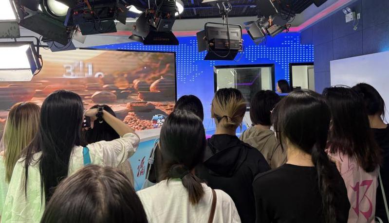 同学们深入新闻生产一线,依次参观了全媒体演播室、高清摄影棚、虚拟直播间等现代化采编场所。在演播室,技术人员现场演示了虚拟背景切换技术,让同学们直观感受到科技赋能新闻呈现的魅力;在摄影棚,专业灯光师讲解了不同场景下的布光技巧,同学们纷纷进行实践操作;来到直播间,主播正通过多平台进行实时直播,这种融媒体传播方式让同学们眼前一亮。
