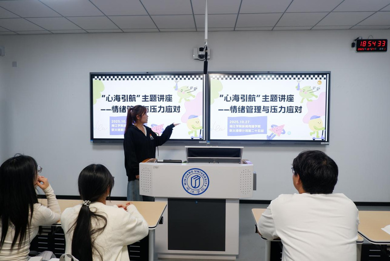 本次讲座围绕“情绪压力来源”“认识情绪压力”“情绪管理技巧”“压力应对技巧”“心理支持指南” 及 “心理测试互动” 六大板块展开,内容紧密贴合学生实际。通过由浅入深的心理测试题,引导大学生更清晰地了解并面对内心的自己,为其应对心理压力相关问题提供了有效路径。主讲人王闽南从生活、学业及未来规划三个维度,带领大家剖析当代大学生情绪压力的来源,并强调 “正确认识情绪压力” 的重要性。