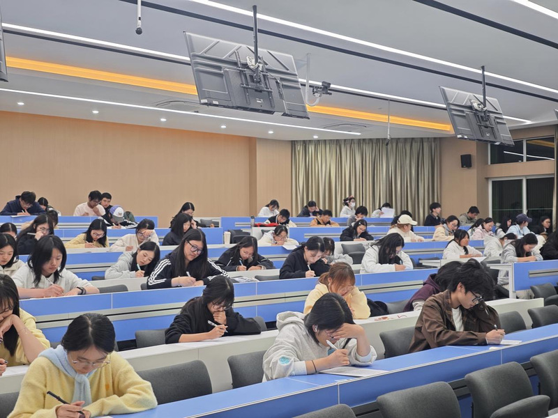 考场秩序井然、监考严格。新生专注答题,考试内容基于《御宅屋 2025年本科生学生手册》,涵盖各类学校学生管理规定、奖惩制度等内容。以考促学,教育引导2025级新生更好理解行为规范,做到知行合一。